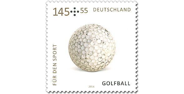 Der Golfball ziert die 145-Cent-Marke, die für 2,00 Euro erworben werden kann. Der Aufschlag von 55 Cent geht zu Gunsten der Stiftung Deutsche Sporthilfe, die mit jedem Briefmarkenkauf unterstützt wird.