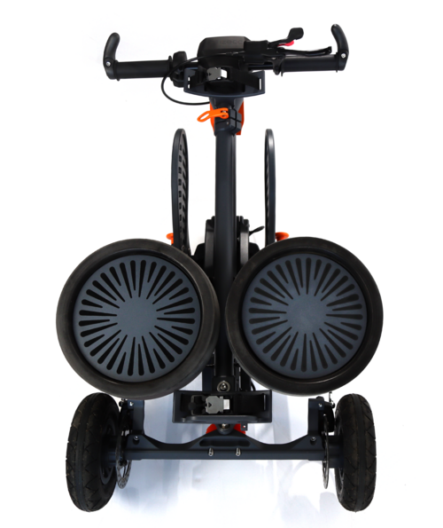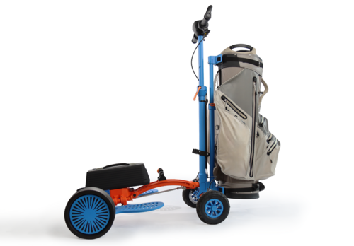 Der gleichnamige izecc ist ein elektrisches Golf-Fahrzeug, das Funktionen und Vorteile eines Trolleys, Scooters und Golfcarts vereint. Der izecc bietet Platz für eine Person und für ein Golf Bag und lässt sich für den Transport sehr kompakt zusammenfalten.