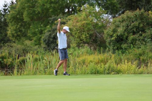Wie gut er aktuell in Form ist, auch konditionell, das bewies er eindrucksvoll nicht zuletzt an der letzten Spielbahn des Turniers. Das Par 3 misst 162 Meter, für Nervenkitzel sorgt ein Wasserhindernis direkt hinter dem Grün. In diesen Teich hatte wenige Minuten zuvor der Australier Paul Archbold seinen Ball geschlagen, konnte zwar noch das Bogey retten, fiel aber zurück auf 5 unter Par. Schlaggleich mit 6 unter Par stehen Christoph Günther und der Südafrikaner Glen Hutcheson auf dem 18. Abschlag, beide treffen das ausladende Grün. Doch während Hutcheson seinen Putt aus elf Metern knapp neben dem Loch vorbeischiebt, hat Christoph Günther ganz offenbar keine Lust auf ein Stechen, locht aus sechs Metern ebenso nervenstark wie abgeklärt zum Birdie ein und gewinnt damit seine erste Dieter Praun Trophy auf Anhieb – ganz nach dem Motto: Er kam, sah und siegte! „Der Putt war ein bisschen außerhalb rechts, ich hatte schon in Runde 2 an der 18 das Birdie gemacht, auch da von hinter der Fahne aus dem etwa gleichen Winkel. Das Grün ändert sich ja nicht grundsätzlich, und ich habe dann tatsächlich einfach an Menschen gedacht, die mir wichtig sind, und die sich sehr freuen würden, wenn ich den jetzt reinmache. Und es hat geklappt.“ Den Titel feiert er mit der Siegerfaust.