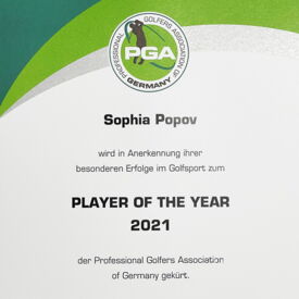 Als herausragende Tourspieler der vergangenen zwei Jahre empfanden die Mitglieder der PGA of Germany bei den Damen erstmals Sophia Popov, bei den Herren einmal mehr Bernhard Langer. Sophia Popov ist heute auf der Ladies European Tour ebenso spielberechtigt wie auf der LPGA Tour, und sie feierte am 23. August 2020 den bisher größten Erfolg ihrer Karriere: Im schottischen Troon holte die damals 27-Jährige, die in Arizona in den USA lebt, den Titel der AIG Women's Open und schaffte damit auf dem legendären Platz von Royal Troon den ersten Major-Sieg einer deutschen Spielerin.