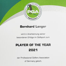 „Die Auszeichnung als PGA of Germany Player of the Year hat mich sehr gefreut, und sie ist mir eine Ehre“, grüßte der Anhausener per Video-Botschaft. Herzlich gratulierte er auch Alex Cejka und Matthias Schmid zu ihren Leistungen im letzten Jahr und wünschte sodann allen Berufskollegen eine „super Saison“. Auf die darf sich Bernhard Langer in jedem Fall jetzt schon freuen: Bei der Chubb Classic in Florida machte er just an dem Abend seinen ersten Saisonsieg perfekt, als er in Deutschland den PGA Award für den Player of the Year 2020/2021 erhielt.