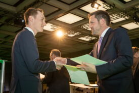 von Matthias LettenbichlerKassel – „Mir ist es selbst immer noch ein bisschen unheimlich, aber natürlich freue ich mich riesig über diese Auszeichnung!“ Nur ein Jahr, nachdem ein Experten-Gremium der PGA of Germany ihn zum PGA Jugendtrainer des Jahres ernannt hatte, darf Christian Lanfermann nun auch den Preis für den „PGA Teacher of the Year“ entgegen nehmen. „Als Jugendtrainer wirft man seinen Hut ja selbst in den Ring und bewirbt sich. Bei der Wahl des Trainers des Jahres votieren die Kolleginnen und Kollegen ganz frei – das ist natürlich schon eine wirklich ganz besondere Ehre, die ich sehr zu schätzen weiß“, so der Leistungssport-Koordinator des Hamburger GC Falkenstein. Unter dem Applaus der Gäste der PGA Gala 2019 nahm der Sieger den Preis im Kongress-Palais in Kassel entgegen und freute sich darüber, „dass das, was man macht, ganz offensichtlich in die richtige Richtung geht und auch so wahrgenommen wird“.