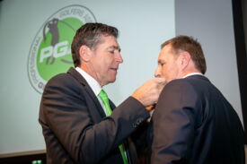 Vor zwölf Monaten wurde er als „PGA Jugendtrainer des Jahres 2017“ ausgezeichnet. Jetzt wählten seine Berufskollegen Christian Lanfermann vom Hamburger Golf-Club Falkenstein zum „PGA Teacher of the Year 2018“. Im Rahmen der feierlichen PGA Gala in Kassel nahm der 39-Jährige am Samstagabend vor über 300 Gästen die hochkarätige Auszeichnung entgegen. Als beste Jugendtrainer des Jahres 2018 wurden Lars Thiele im Bereich Leistungssport und Ulrich Schäring für den Breitensport ausgezeichnet. Ebenfalls geehrt wurden Caroline Masson und Bernhard Langer, die in der Damen- und Herren-Konkurrenz ihre Titel als „PGA Player of the Year“ verteidigen konnten.