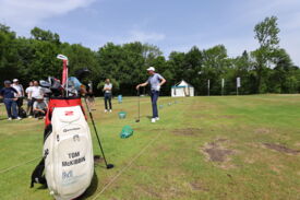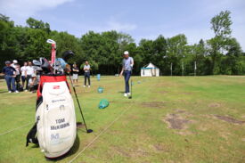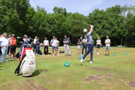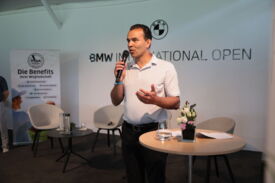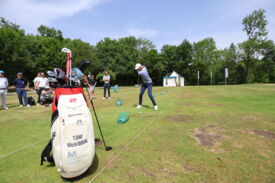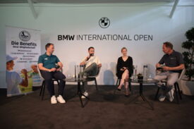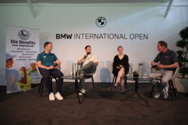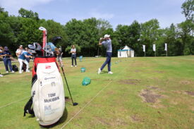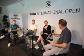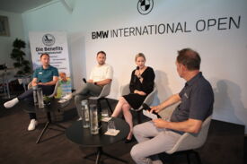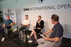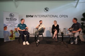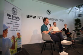 Eichenried – Zunächst tauschten sich auf dem Podium Jessica Weber (Allianz), Marius Nistler (CAA) und Christian Romberg (Kögl & Partner) zum Thema "Personal Branding - wie werden Sportler eine Marke?" aus. Anschließend demonstrierte der Nordire Tom McKibbin, wie man sehr lange und dennoch gerade Bälle schlägt - in Runde 1 des Turniers gelang ihm das bei einer 68er-Runde vorzüglich.