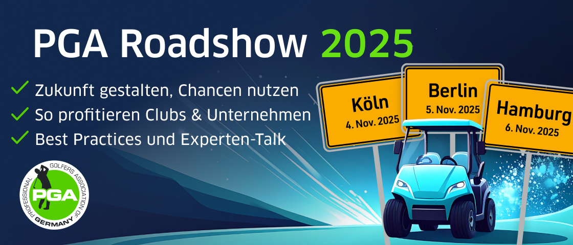 Im Rahmen der PGA Roadshow 2025 / 2026 lädt die PGA of Germany im Herbst 2025 und im Frühjahr 2026 zu einem entspannten Netzwerktreffen inklusive Abendessen in einen Golfclub der Region ein, stellt den Berufsverband und seine bald 100-jährige Geschichte vor und zeigt, wo die Reise der PGA of Germany in den kommenden Jahren hinführen soll. Hauptthema hierbei: Wie können insbesondere Golfclubs vom Know-how und von einem stetigen Austausch mit der PGA of Germany profitieren?