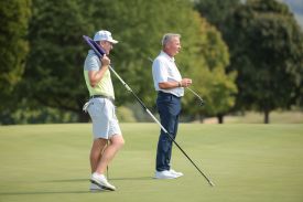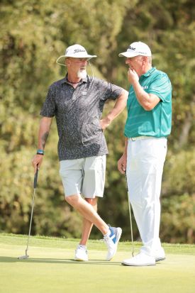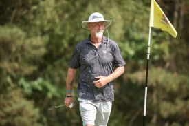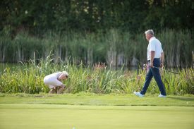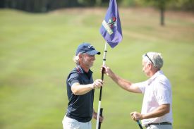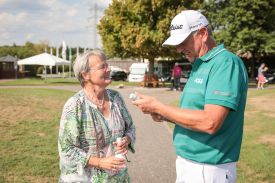 Erst auf dem Weg zurück zum Clubhaus konnte sich Geall mit drei Birdies in Serie an den Löchern 11, 12 und 13 leicht absetzen, doch MacDonald blieb auch da noch in Reichweite – zumindest bis zur 17. Spielbahn: Da unterlief dem 61-Jährigen an diesem 424 Meter langen Par 5 eine Elf, die der mehrfache PGA Seniors-Champion später selbst völlig fassungslos und kopfschüttelnd so kommentierte: „Ich weiß noch immer nicht so ganz genau, was da passiert ist …“ In jedem Fall war damit das Turnier endgültig zu Gealls Gunsten entschieden, der zwei Tage lang exzellentes Golf gezeigt hatte und sich neben der Siegertrophäe 2000 Euro Preisgeld sicherte. „Ich habe ein paar sehr gute Drives rausgelassen, aber auch die Putts haben gut funktioniert. Dieses Turnier ist eine sehr gute Sache, und Hella kann wirklich stolz sein, dass so viele Professionals und ehemalige Kollegen von Dieter am Start gewesen sind“, so der Champion.