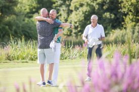 Und das auch noch in den kommenden Jahren: Auch 2023 und 2024 wird es eine Dieter Praun Trophy für die Senioren der PGA of Germany geben, das steht bereits fest, denn 2024, zum 60. Geburtstag des Verstorbenen, ist der Höhepunkt der Gedenk-Trophy geplant. Detlef Hennings, Geschäftsführer des Golfclub Schwanhof und damit Gastgeber der Turnier-Premiere, kann sich „sehr gut vorstellen“, dass das Event auch im kommendem Sommer am Schwanhof stattfindet, und Gründerin Hella Schoepe-Praun, die den ganzen Tag über liebe Worte und Piccolos verteilte und viele Hände schüttelte, schließt auch nicht aus, dass dieses Turnier sogar zu einem Fixpunkt im Jahreskalender der PGA of Germany werden könnte: „Wenn die Resonanz so gut bleibt, dann kann ich mir gut vorstellen, dass es dieses Turnier auch über die zunächst angedachten drei Jahre hinaus geben wird. Es wird dann einfach ein schönes Turnier der Senioren sein.“ Das war dieses Turnier ohne Zweifel schon bei seiner absolut gelungenen Premiere.