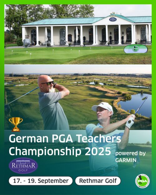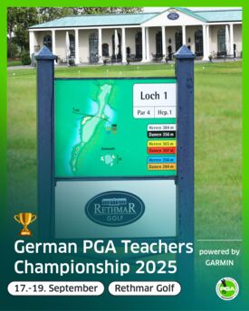 Premiere: Vom 17. bis 19. September steigt erstmals auf dem Platz Rethmar Golf in Sehnde südöstlich von Hannover die Deutsche Golflehrermeisterschaft 2025. Zwei Spielerinnen und 84 Spieler kämpfen über drei Runden um den Titel der German PGA Teachers Championship 2025 powered by Garmin. LIVE SCORING >>>