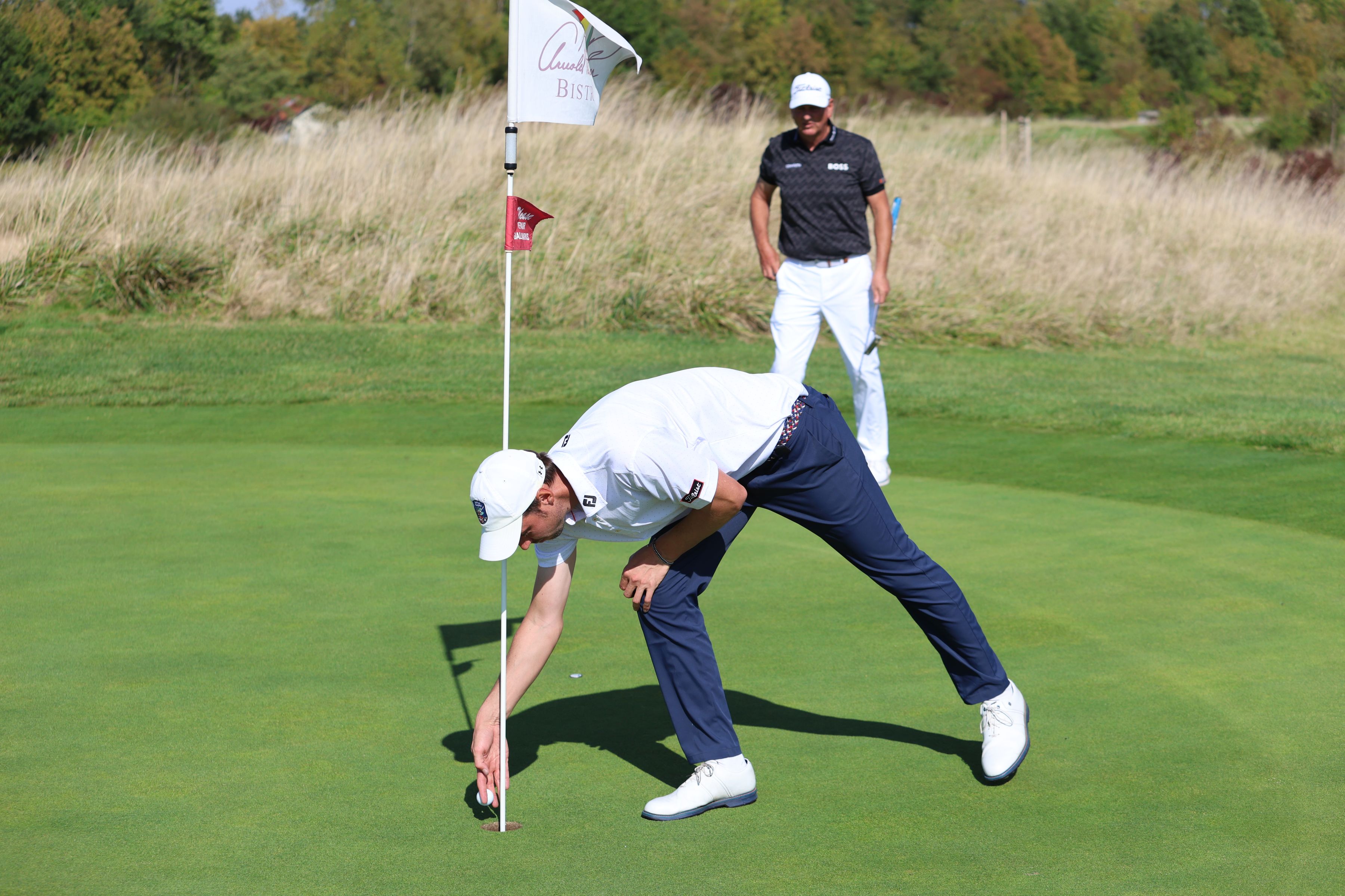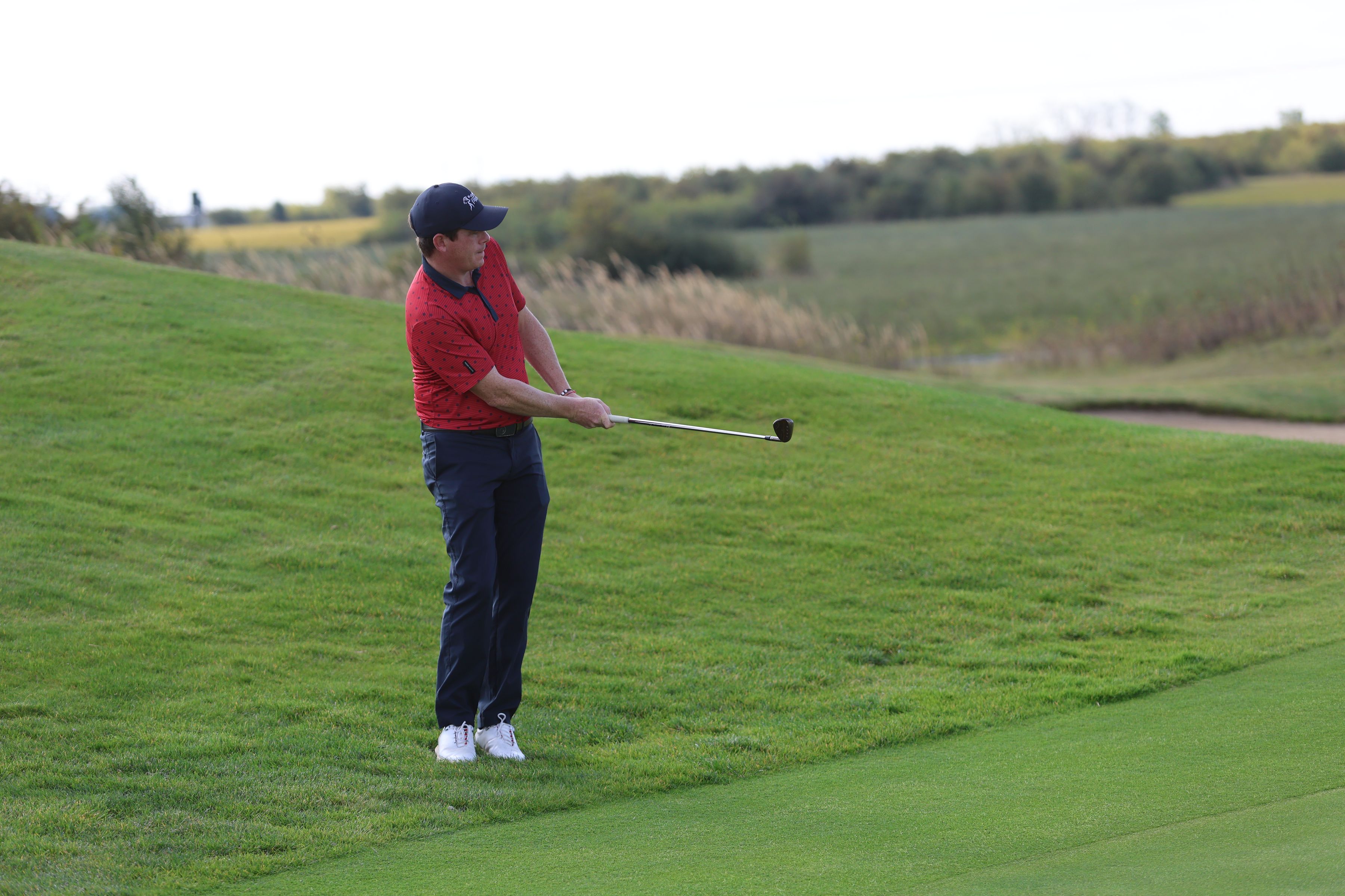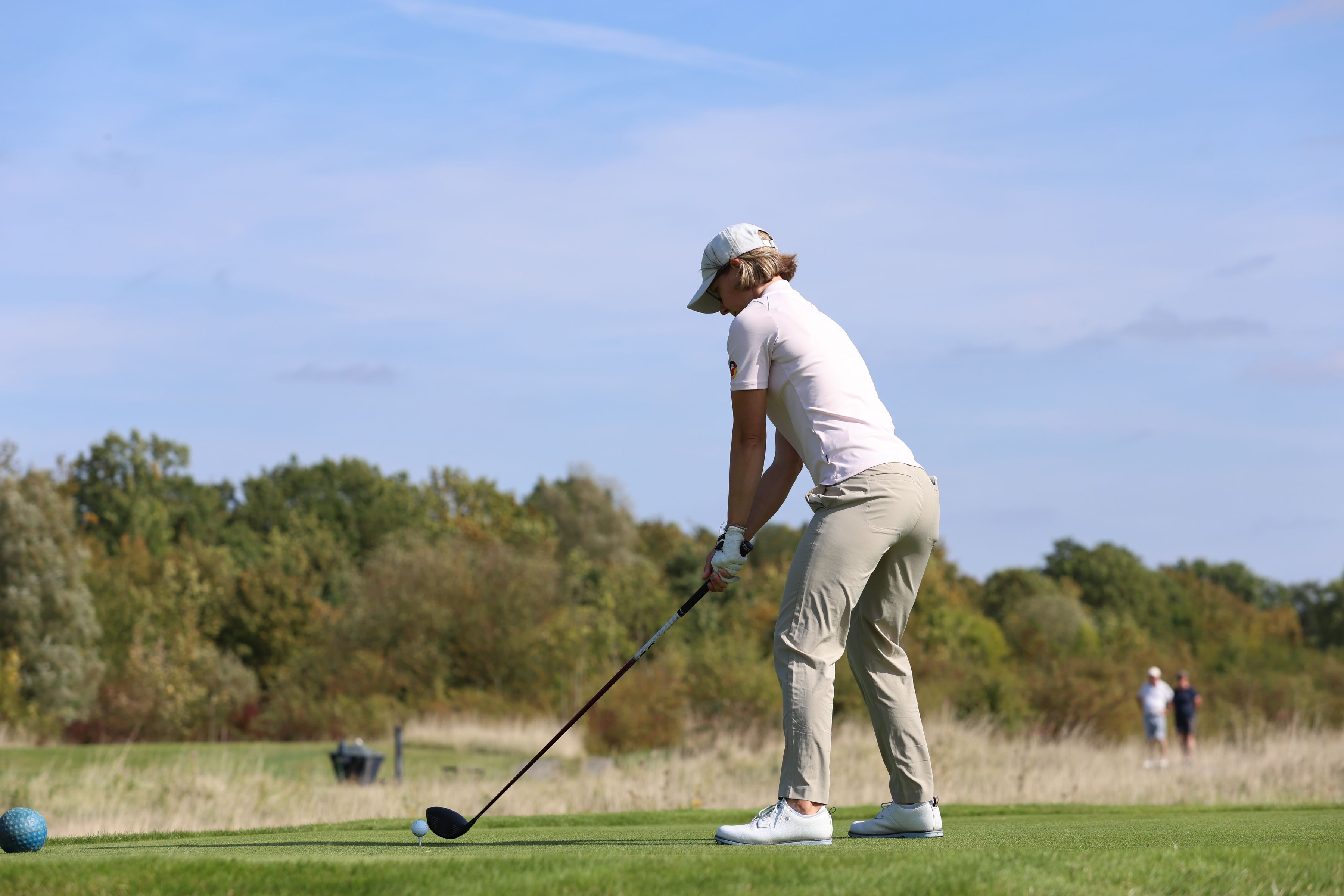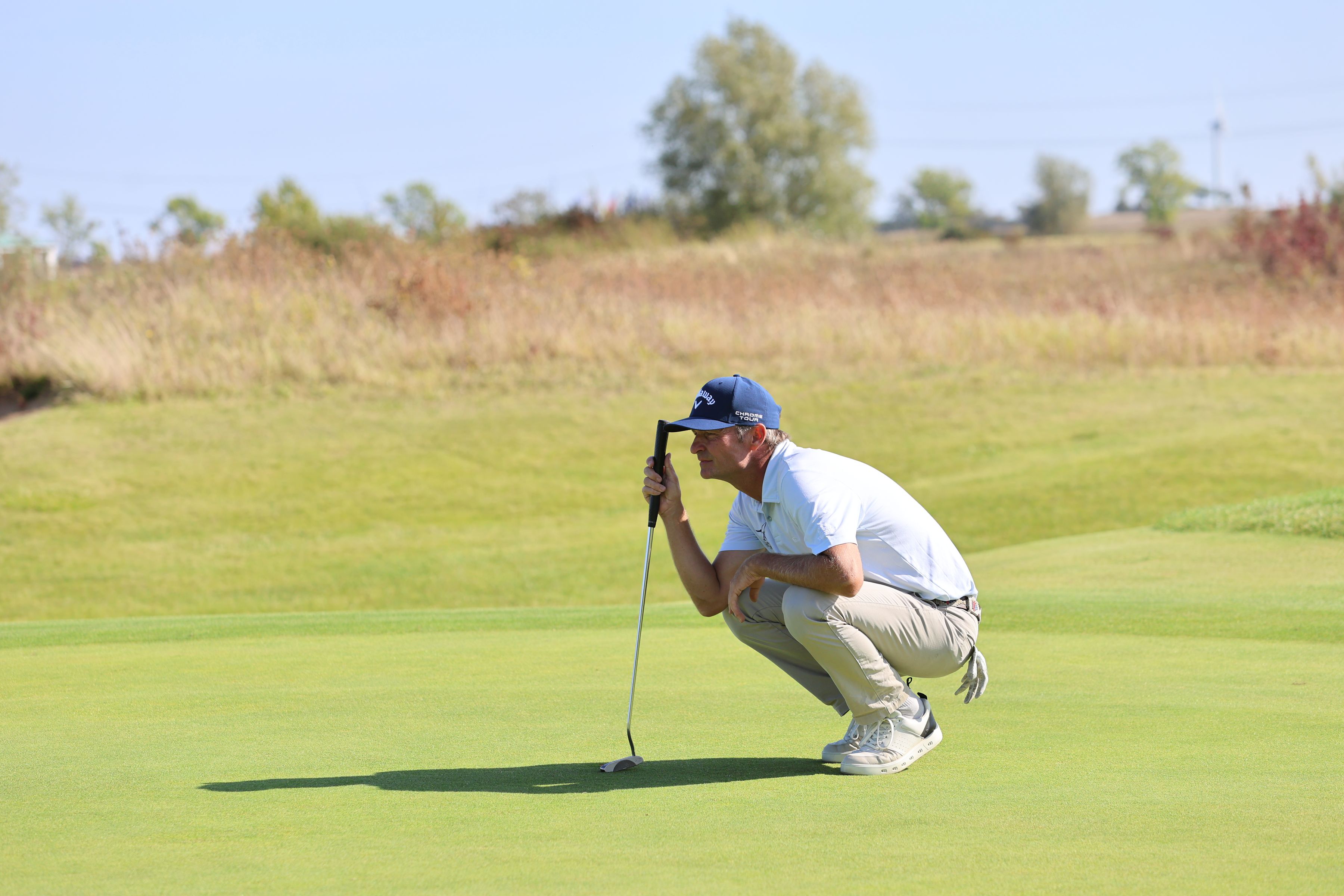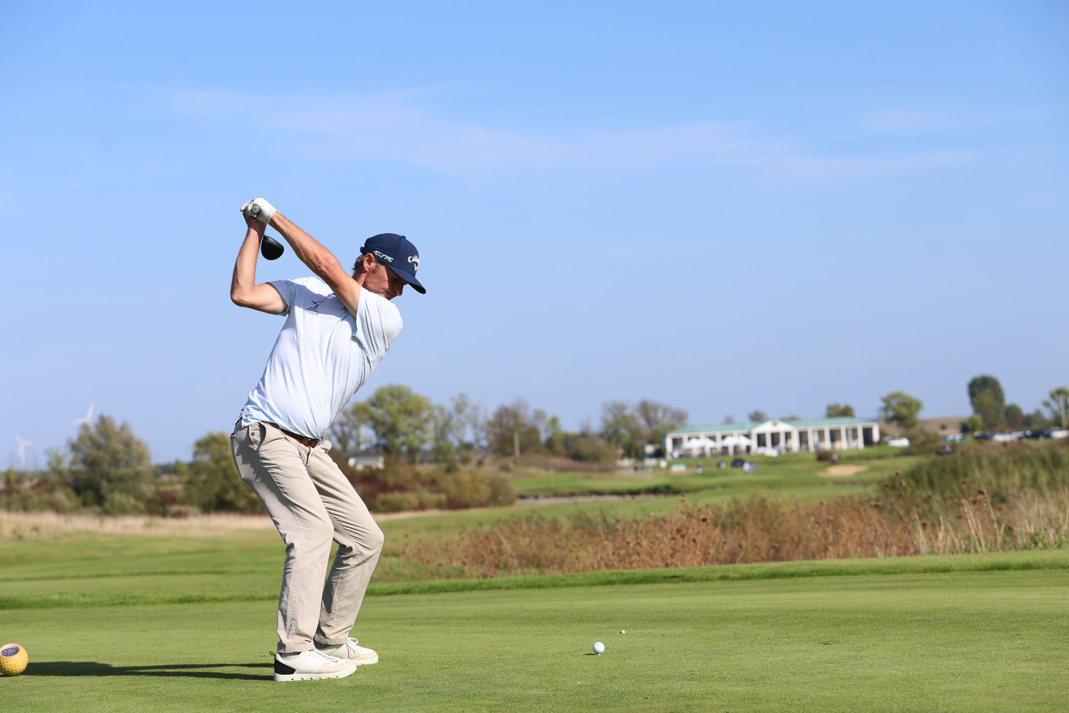 In Sehnde, auf dem Platz Rethmar Golf Links, trat er dann mit dem klaren Ziel an, sich zum dritten Mal in seiner Laufbahn den Titel der German PGA Teachers Championship zu holen, und mit der Gewissheit, dass ihm der Arnold-Palmer-Platz grundsätzlich liegt. Nicht nur, weil es sich um ein Links-Layout handelt: Breite Fairways, große Grüns, sandiger Boden, wenige Ausgrenzen und gestaltet wie eine Dünenlandschaft, ohne Bäume – genau wie der Faldo Course in Bad Saarow und wie auch der Platz WINSTONlinks. Sondern vor allem auch, weil er auf dem Platz in Sehnde schon einmal gewonnen hat – und mit 66 Schlägen noch immer den Platzrekord hält: 2023 setzte sich Paul Archbold mit fünf Schlägen Vorsprung beim PGA-Pro-Day-Turnier auf dem Platz Rethmar Golf Links durch. Und diesmal kam er zurück, um hier die DM der Golflehrer zu gewinnen.