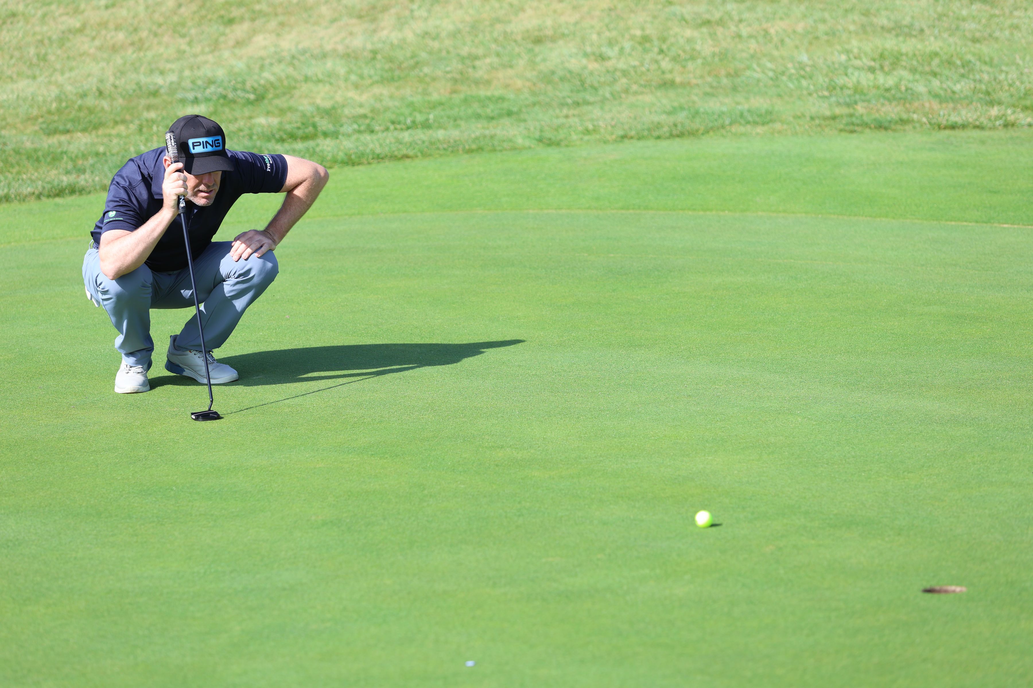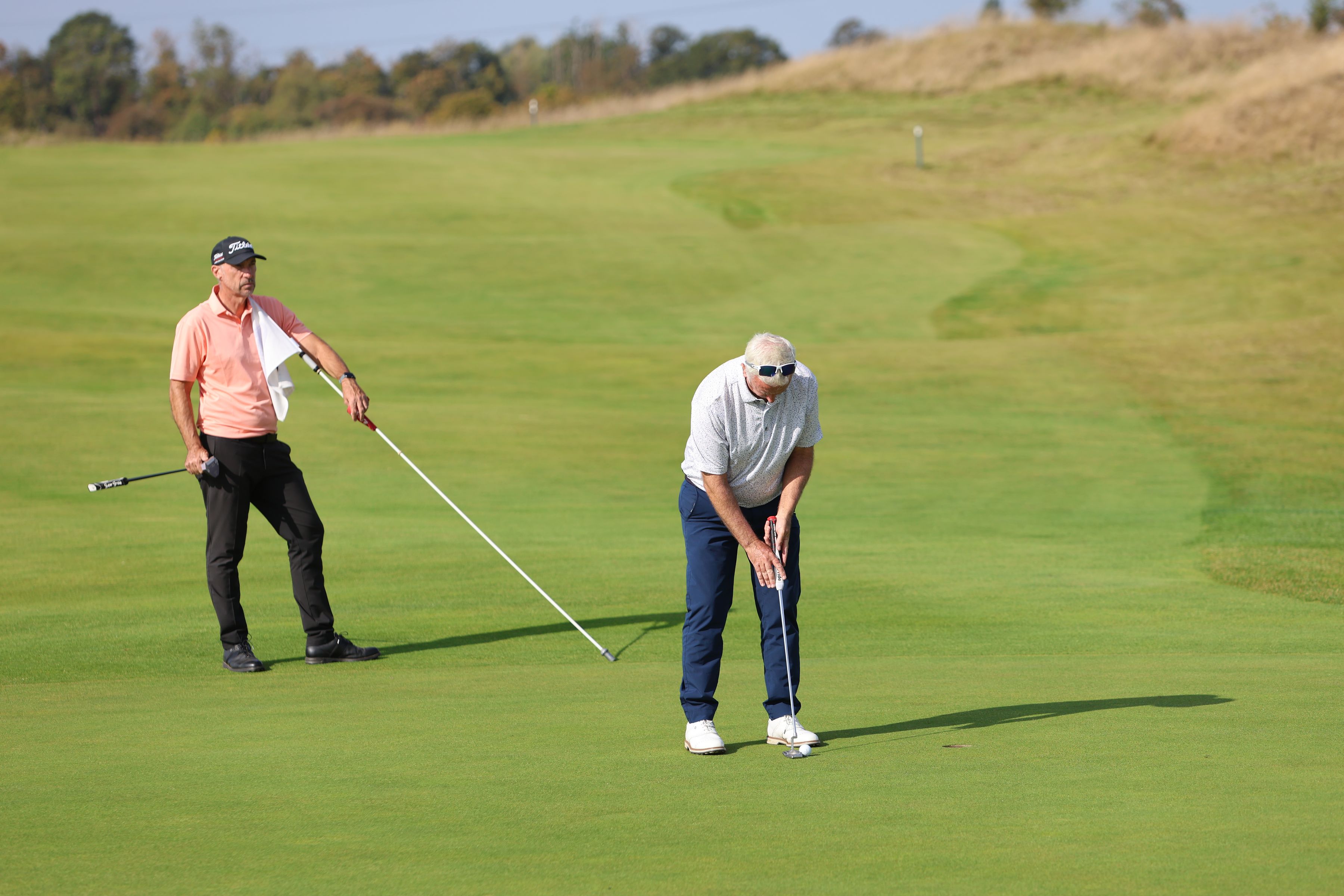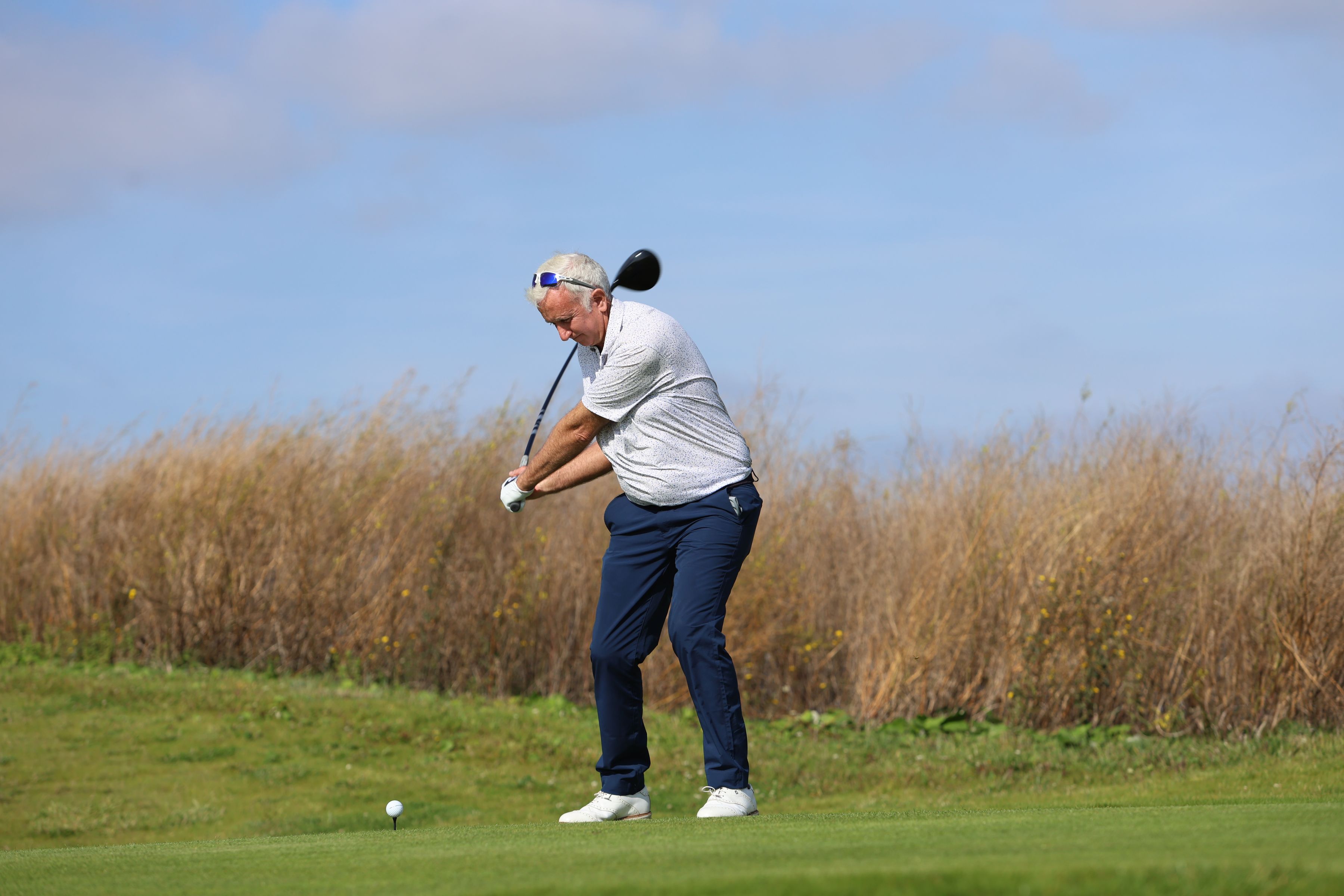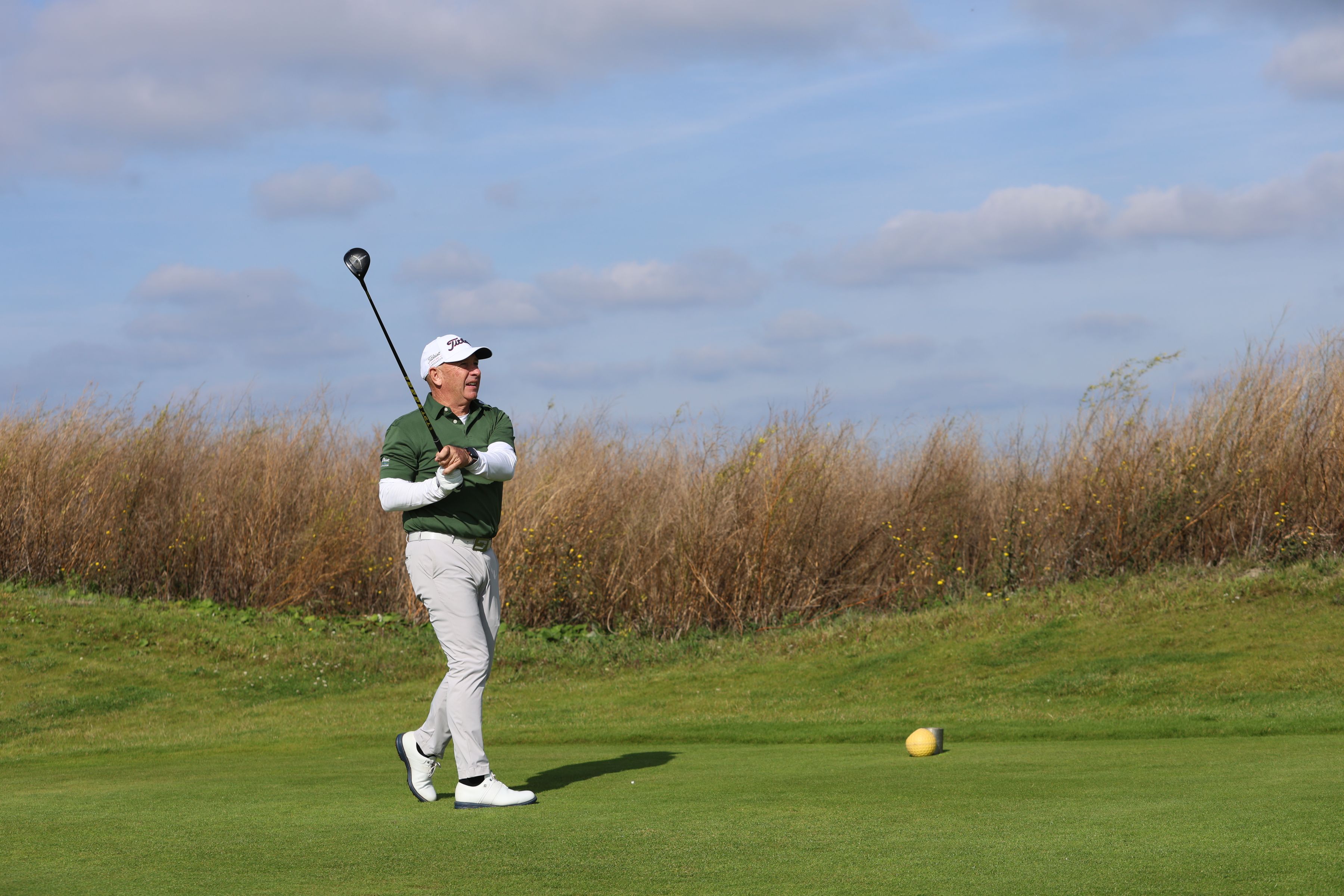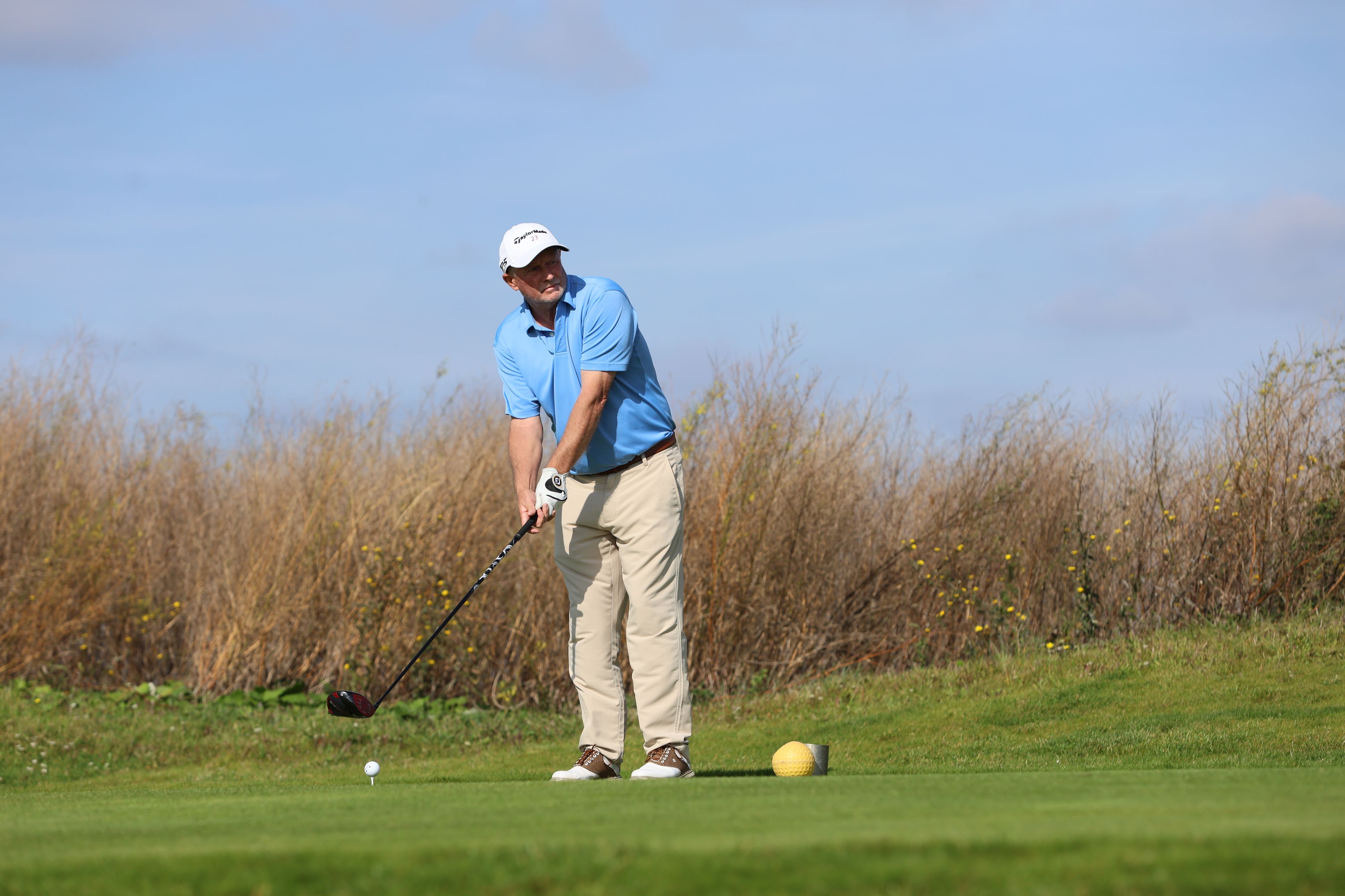 In Sehnde, auf dem Platz Rethmar Golf Links, trat er dann mit dem klaren Ziel an, sich zum dritten Mal in seiner Laufbahn den Titel der German PGA Teachers Championship zu holen, und mit der Gewissheit, dass ihm der Arnold-Palmer-Platz grundsätzlich liegt. Nicht nur, weil es sich um ein Links-Layout handelt: Breite Fairways, große Grüns, sandiger Boden, wenige Ausgrenzen und gestaltet wie eine Dünenlandschaft, ohne Bäume – genau wie der Faldo Course in Bad Saarow und wie auch der Platz WINSTONlinks. Sondern vor allem auch, weil er auf dem Platz in Sehnde schon einmal gewonnen hat – und mit 66 Schlägen noch immer den Platzrekord hält: 2023 setzte sich Paul Archbold mit fünf Schlägen Vorsprung beim PGA-Pro-Day-Turnier auf dem Platz Rethmar Golf Links durch. Und diesmal kam er zurück, um hier die DM der Golflehrer zu gewinnen.