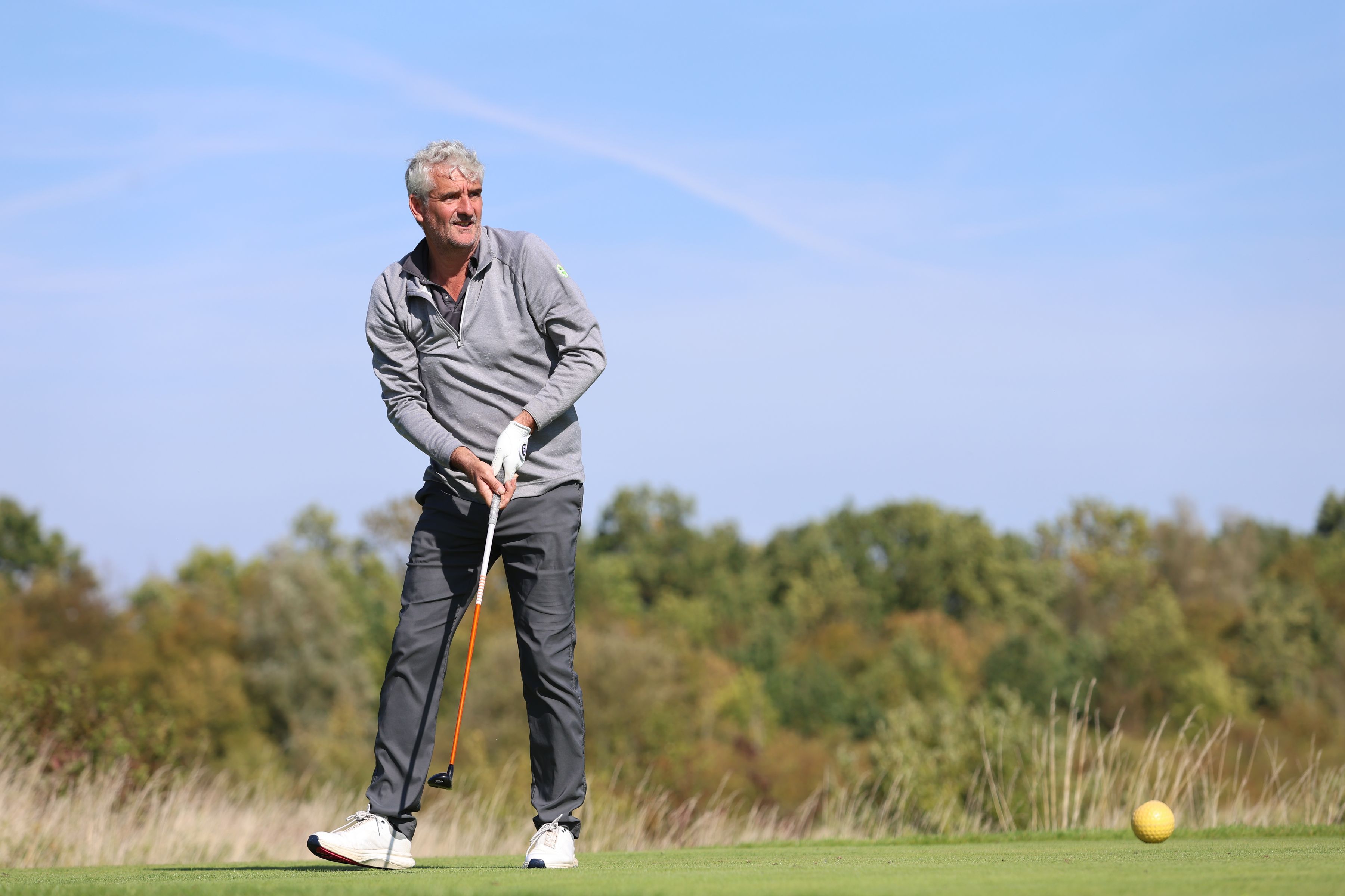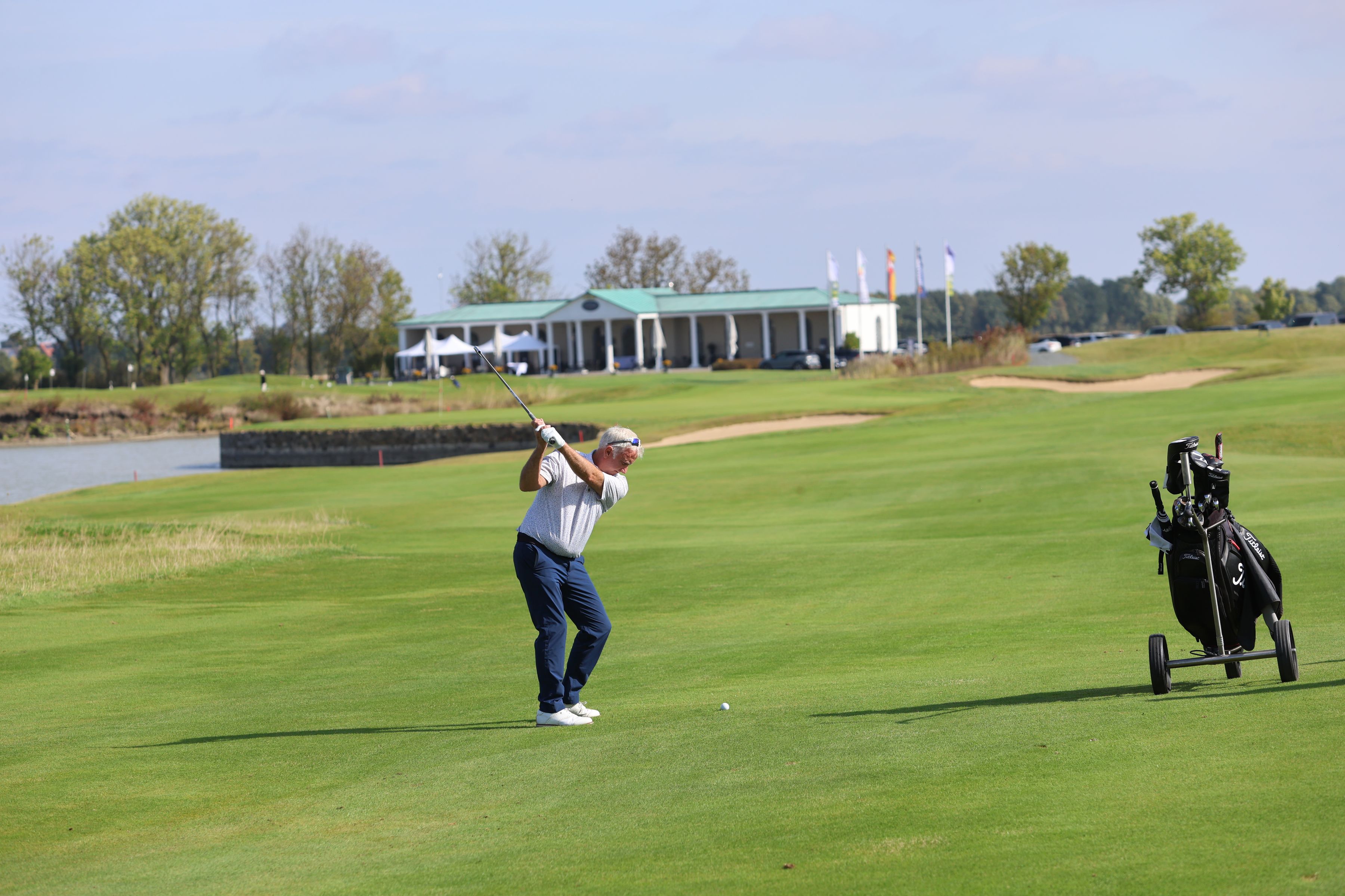 Sehnde – Es war das Treffen zweier guter alter Bekannter, als Paul Archbold in der Abendsonne vor dem neoklassizistischen Clubhaus von Rethmar den Siegerpokal der German PGA Teachers Championship 2025 entgegennahm, ihn fest und zugleich zärtlich in seine Arme schloss und streichelte, mit ein wenig Glanz in den Augen und einer Mischung aus Stolz und unverhohlener Freude. Zum bereits dritten Mal bekam er die silberne Siegertrophäe der Deutschen Golflehrermeisterschaft von PGA-Turnierchefin Angelika Wördehoff überreicht, wie schon 2006 am Scharmützelsee im Golf Club Bad Saarow, und ebenso wie 2019, damals in WINSTONgolf in Gneven. Allein diese Zeitspanne zeigt, auf welch konstant hohem Niveau Paul Archbold Golf spielt. Mit inzwischen 57 Jahren gehört er seit seinem 50. Geburtstag nicht nur zu den besten Senior-Professionals der PGA of Germany, sondern der gebürtige Australier, der seit vielen Jahren im Golf- und Country Club Seddiner See als PGA Professional unterrichtet, war auch bei den Herren schon immer eines der spielstärksten Mitglieder des Berufsverbands. Auf dem Links-Platz der Anlage Rethmar Golf in Sehnde präsentierte er sich nun einmal mehr in exzellenter Form, spielte in Durchgang 2 mit einer 68 die beste Runde des gesamten Turniers und verwies nach 54 Löchern Christoph Günther (PROject GOLFworld) auf Platz 2. Rang 3 teilten schlaggleich mit 2 unter Par Martin Keskari vom Golf-Club Neuhof und der Ire Sean Fitzgerald, der im GC Siek/Ahrensburg unterrichtet.