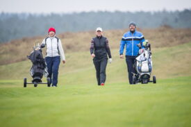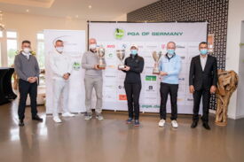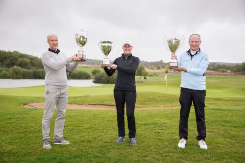 Thomas Gögele, Jacqueline Dittrich und Martin Hastie (von links) sind die Gewinner der Deutschen Golflehrermeisterschaft 2020. Bei der SAM Golftime German PGA Teachers Championship auf den Plätzen von WINSTONgolf in Gneven setzten sie sich bei Herren, Damen und Senioren durch und holten sich die begehrten DM-Titel.