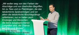 Auch Kariem Baraka, Präsident der PGA of Germany und Geschäftsführer des GC München-Riedhof, sieht im Projekt „Platzvielfalt“ einen entscheidenden Schlüssel, um Golf langfristig attraktiver zu machen – gerade für Einsteiger, aber auch für viele weitere Zielgruppen: „Zu schwierige, vor allem insgesamt zu lange Golfplätze, die dem Spielvermögen gerade von Einsteigern, ebenso aber auch von Senioren, Kindern und oftmals auch von Frauen nicht entsprechen, sorgen für Frust. Viele, die aufhören mit Golf, haben zu wenige Erfolgserlebnisse und zu wenig Spaß auf dem Platz.“