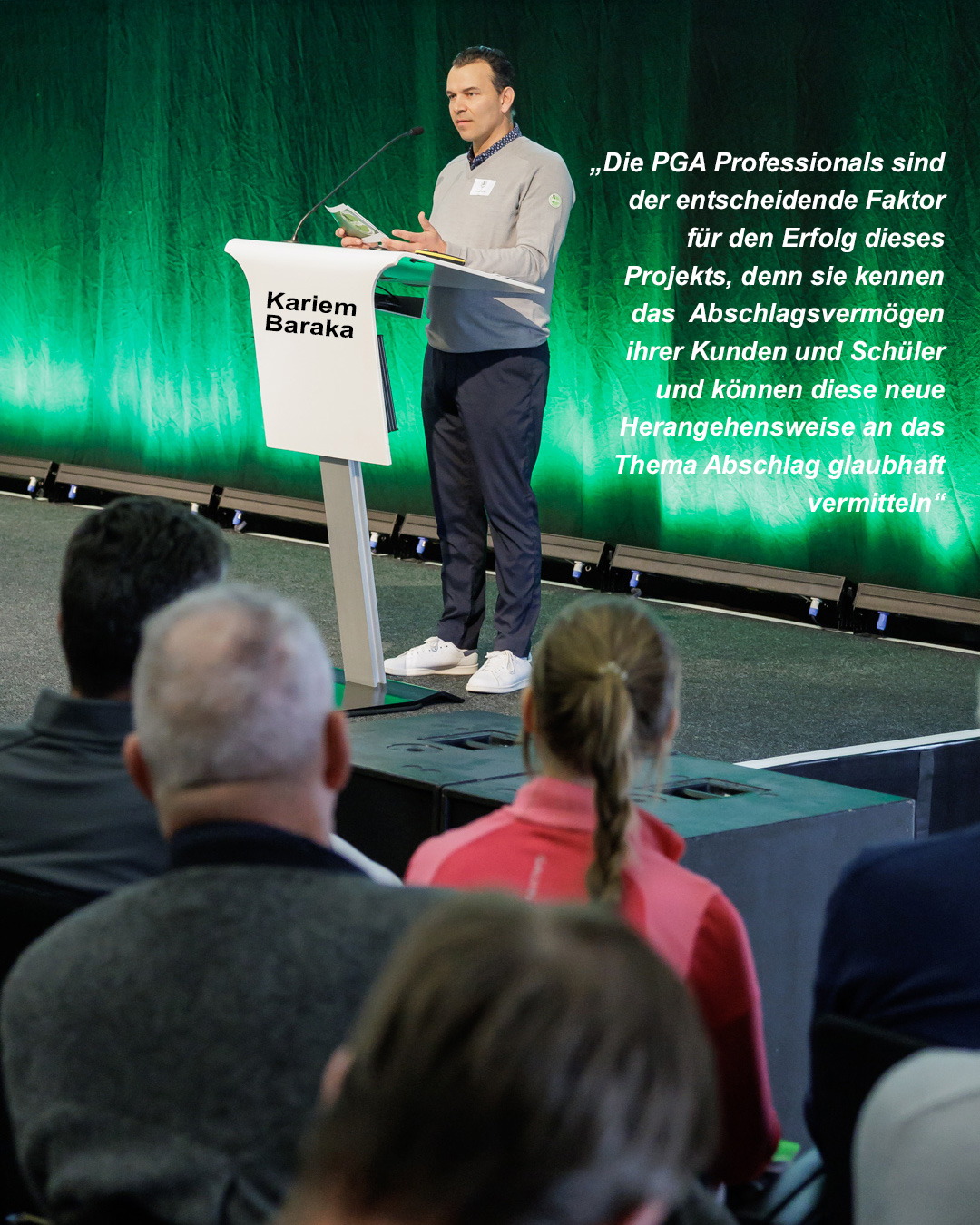 Eine Schlüsselrolle für den Erfolg der Initiative nehmen nach Barakas Überzeugung die PGA Professionals ein, die ihre Kundinnen und Kunden sowie deren Leistungsniveau genau kennen und den Ansatz überzeugend in den Cluballtag übertragen können: „Die PGA Professionals sind der entscheidende Faktor für den Erfolg dieses Projekts, denn sie kennen das Abschlagsvermögen ihrer Kunden und Schüler und können diese neue Herangehensweise an das Thema Abschlag glaubhaft vermitteln“, so der 1. Vorsitzende der PGA of Germany.