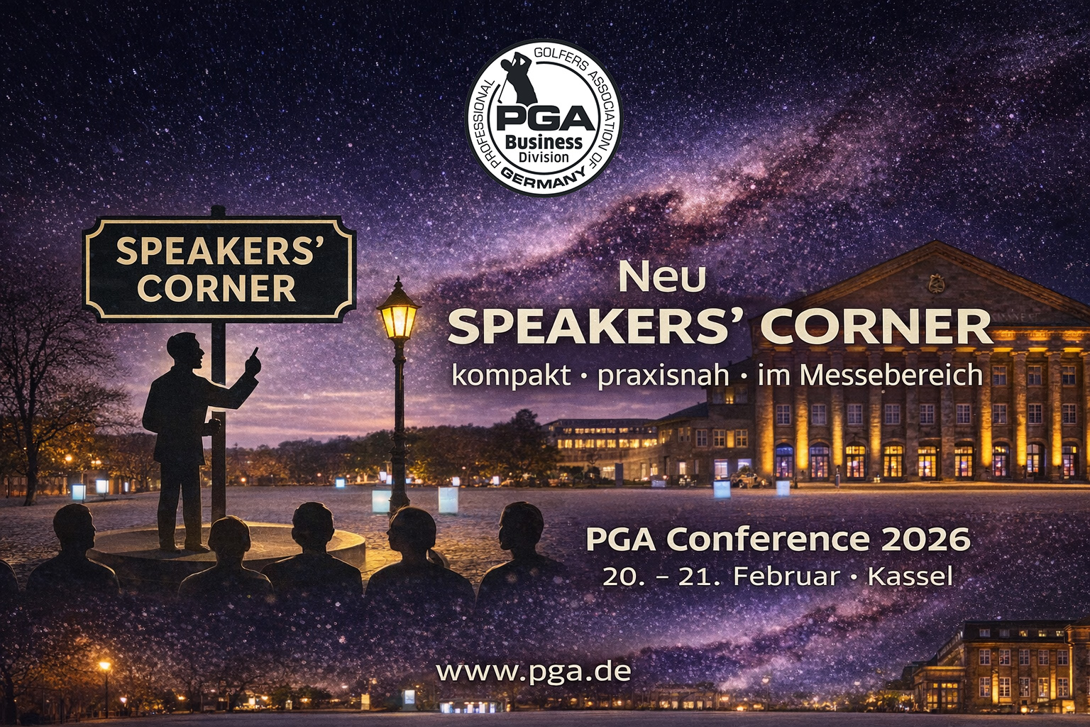 Die PGA Conference 2026 wirft ihre Schatten voraus: Am 20. und 21. Februar – erstmals an einem Freitag und einem Samstag – trifft sich die Golfbranche im Kongress Palais Kassel, um gemeinsam ins neue PGA-Jahr zu starten. Die Veranstaltung ist der traditionelle Jahresauftakt der PGA of Germany und bringt PGA Professionals, Teacher und Coaches, Player und Business-Experten der Golfbranche sowie die Partner des Berufsverbands und langjährige und künftige PGA Mitglieder mit einem umfangreichen PROGRAMM zusammen. Hier geht's direkt zur Anmeldung >>>