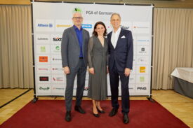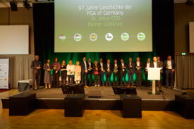 Dass die PGA of Germany eine erfüllende Lebensaufgabe war, bestätigte Rainer Goldrian: „Ich bin sehr glücklich, dass ich vor 30 Jahren meine Tätigkeit bei der PGA aufnehmen konnte, denn das Umfeld Golf und PGA hat mich von Beginn an begeistert. Der Abschied fällt mir zugegebenermaßen nicht leicht, aber vor allem fühle ich Dankbarkeit. Ich habe in meinem Leben sowohl privat als auch beruflich meine Erfüllung gefunden – es war mir eine große Ehre!“ Die PGA sei mit seinen Nachfolgern Ines Halmburger und Felix Lechner sowie mit Kariem Baraka als 1. Vorsitzendem bestens für kommende Herausforderungen aufgestellt: „Es war großartig, mit Euch zusammenzuarbeiten, und ich freue mich, wenn das aktuelle Team die PGA ins nächste Jahrhundert führt.“ Das wird 2027 der Fall sein, dann feiert die PGA of Germany ihren 100. Geburtstag. Zum Abschied gab es für Rainer Goldrian neben Blumen, Ovationen im Stehen und Geschenken auch die Förder-Mitgliedschaft in der PGA of Germany.